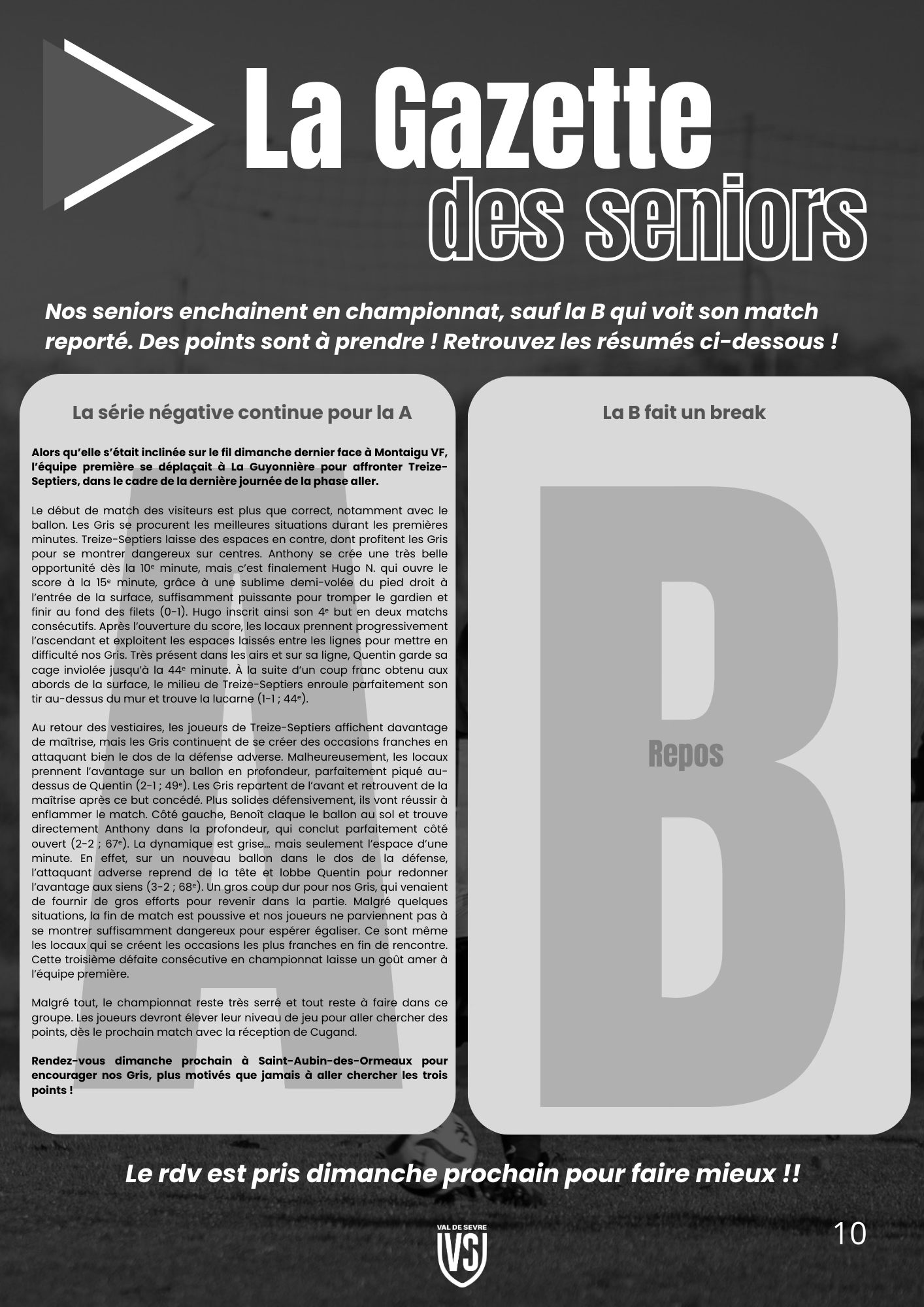 - La Gazette des Minots : Les Pitchouns (U6/U7 & U8/U9), Les Petits Gris (U12/U13), Nos jeunes espoirs (U14/U15 & U16/U17)