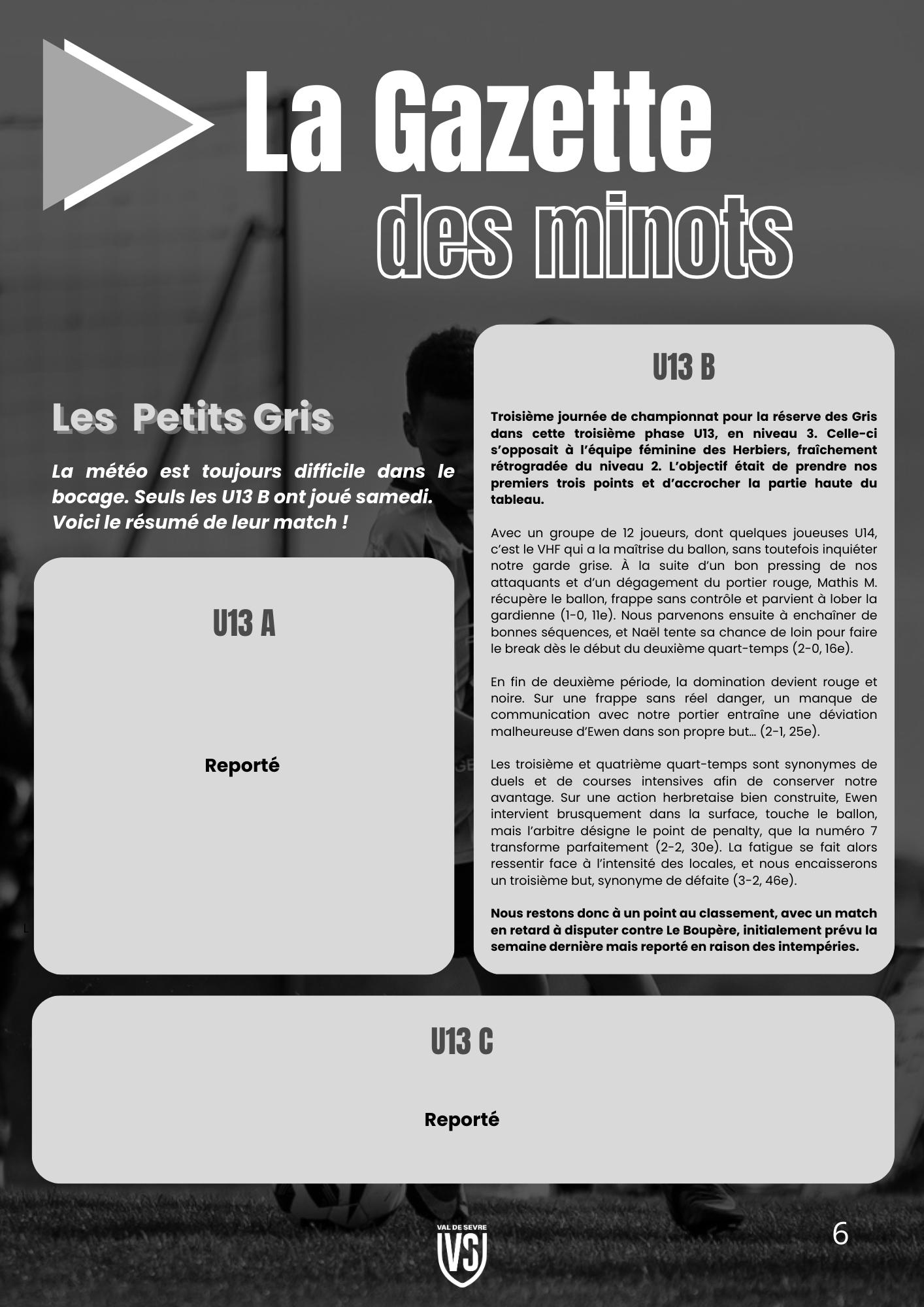 - La Gazette des Minots : Les Pitchouns (U6/U7 & U8/U9), Les Petits Gris (U12/U13), Nos jeunes espoirs (U14/U15 & U16/U17)