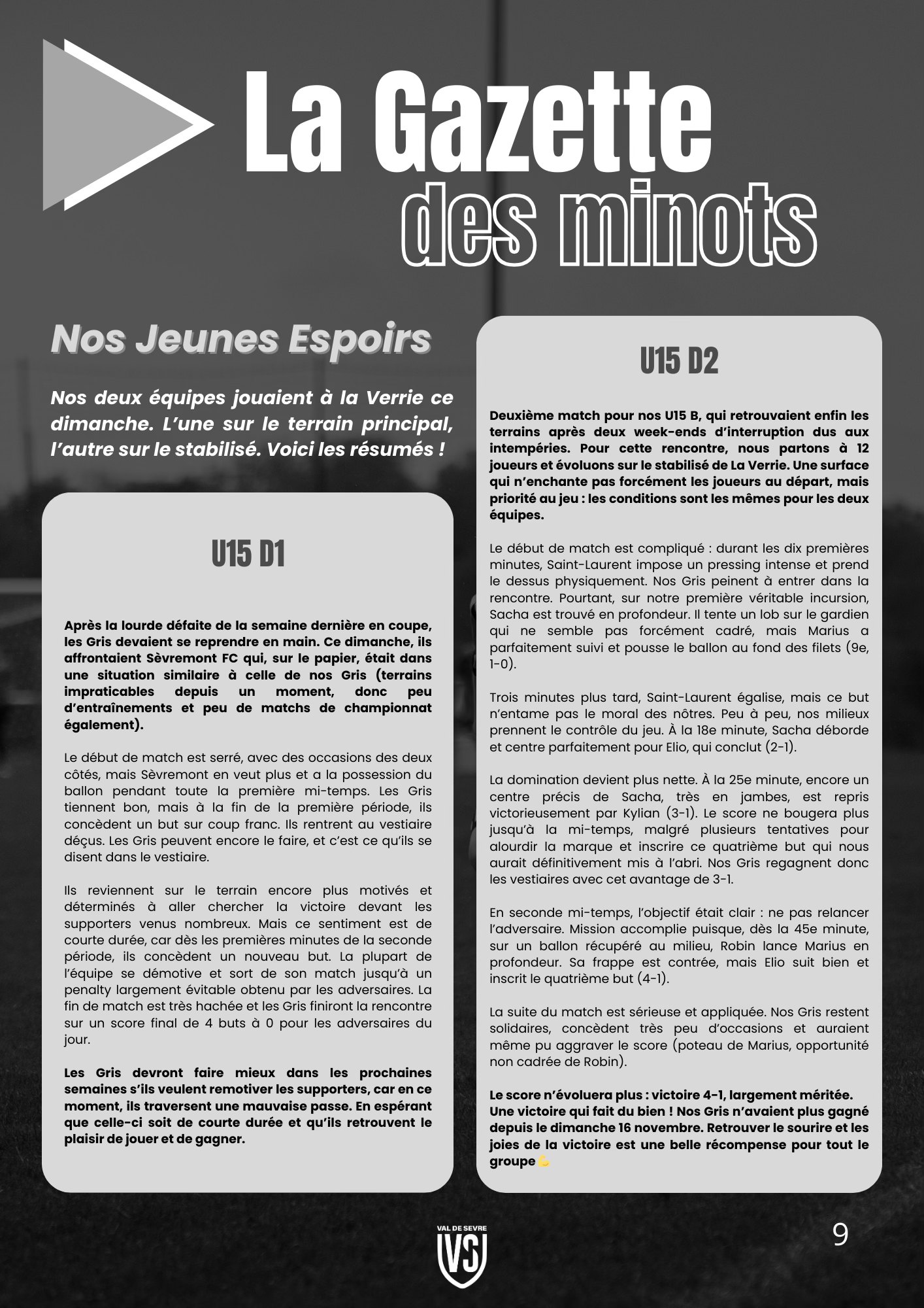 - La Gazette des Minots : Les Pitchouns (U6/U7 & U8/U9), Les Petits Gris (U12/U13), Nos jeunes espoirs (U14/U15 & U16/U17)