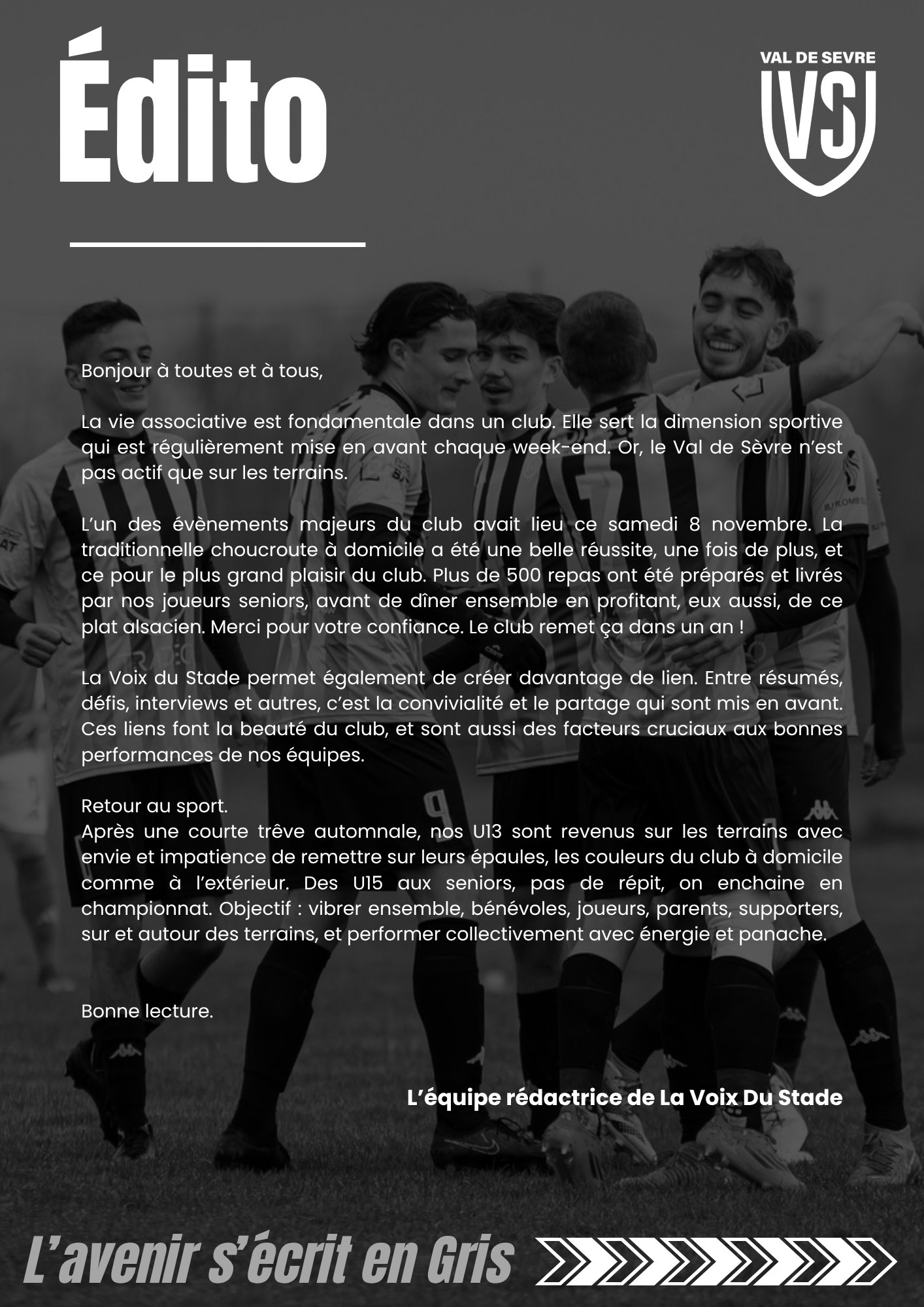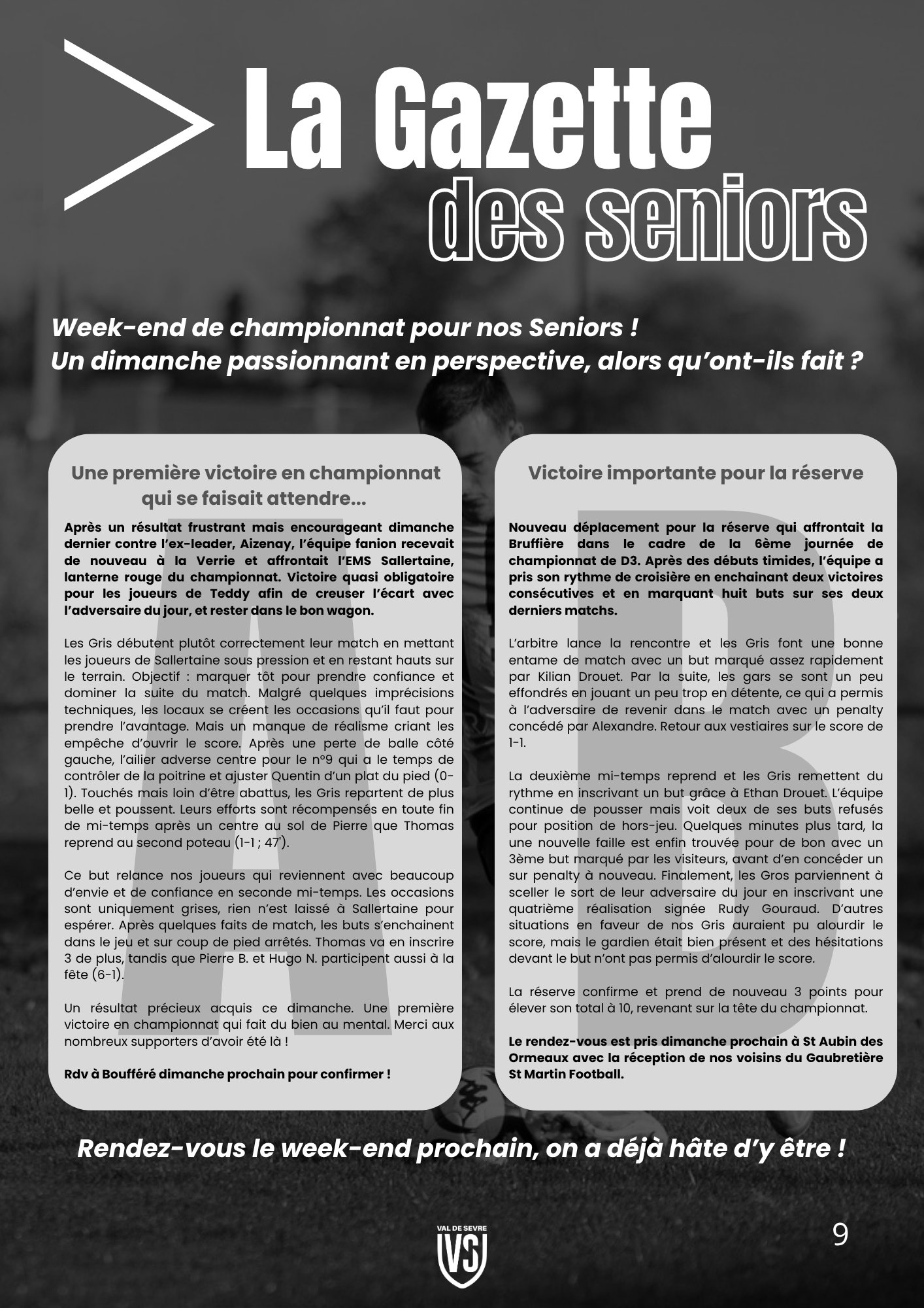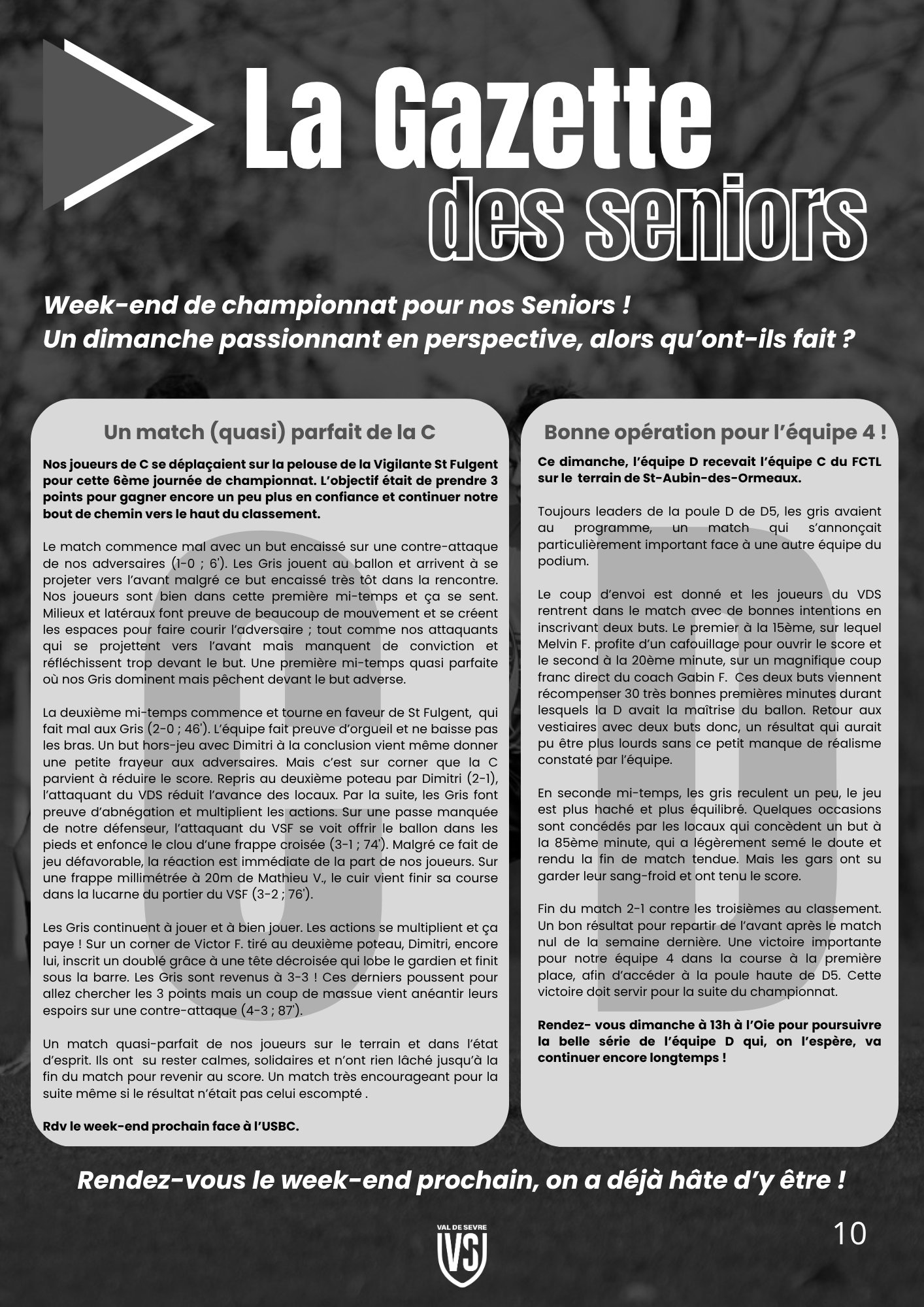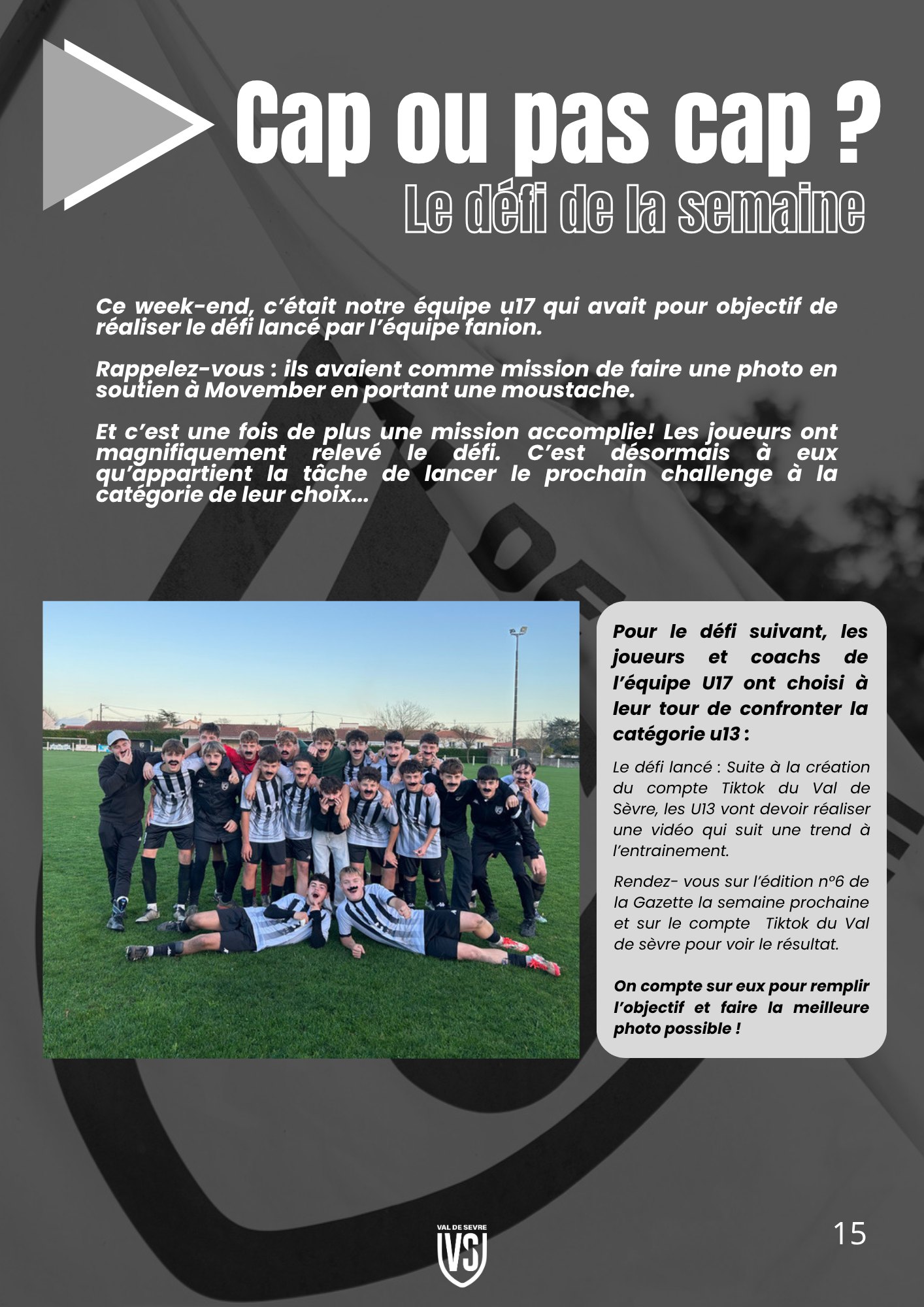 PS : N’hésitez pas à nous envoyer des photos des matchs ou entrainements. Cela nous permettra de les utiliser pour les prochaines gazettes !