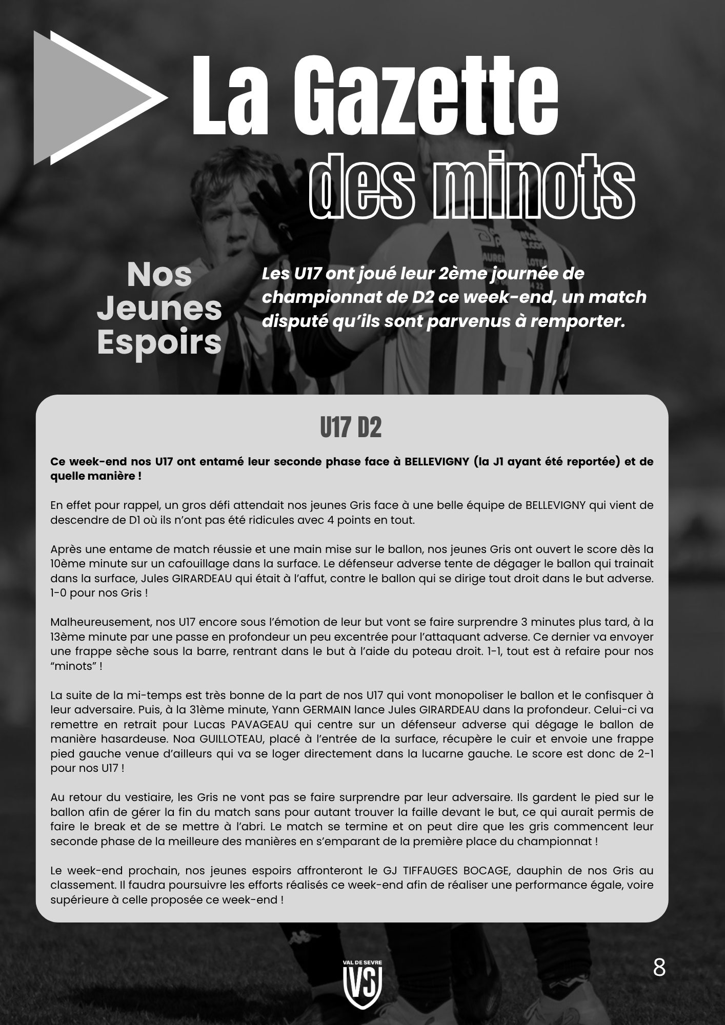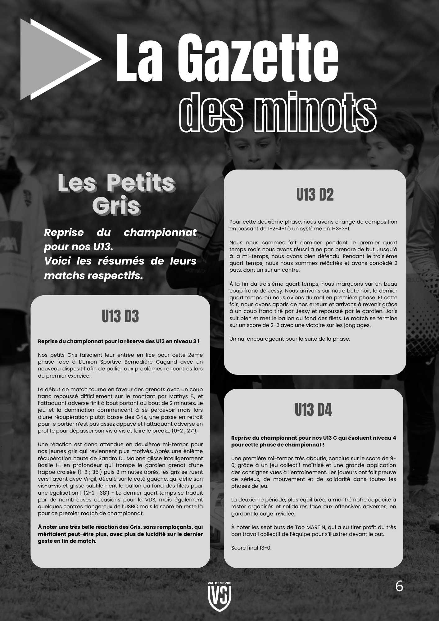 - La Gazette des Minots : Les Pitchouns (U6/U7 & U8/U9), Les Petits Gris (U10/U11 & U12/U13), Nos jeunes espoirs (U14/U15 & U16/U17)