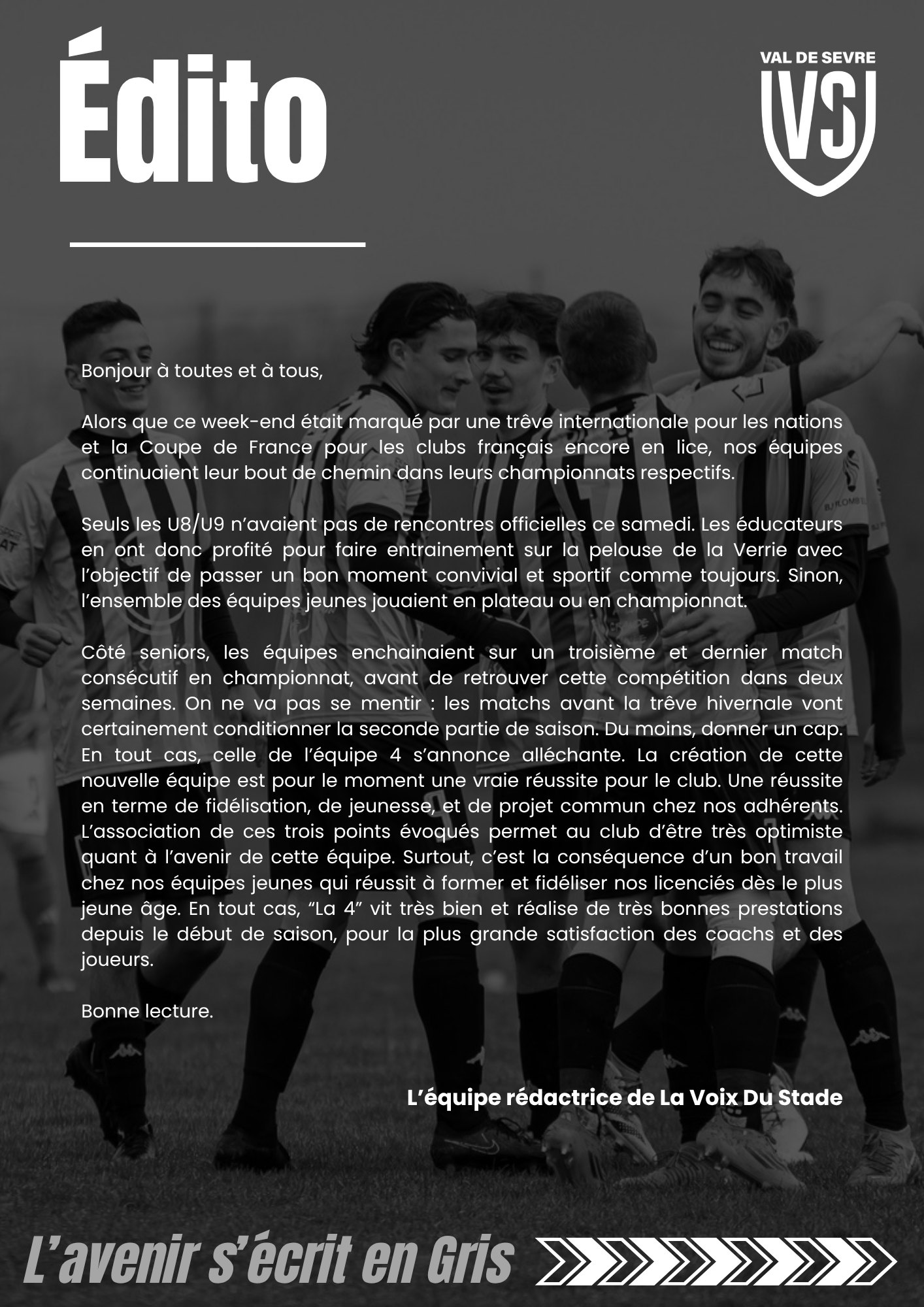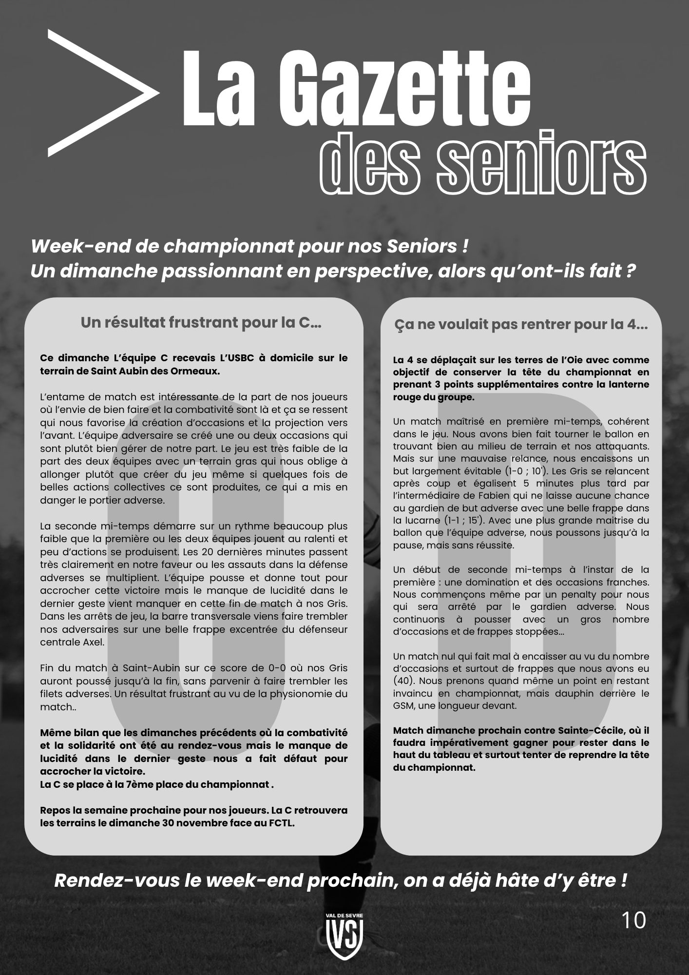 PS : N’hésitez pas à nous envoyer des photos des matchs ou entraînements. Cela nous permettra de les utiliser pour les prochaines gazettes !