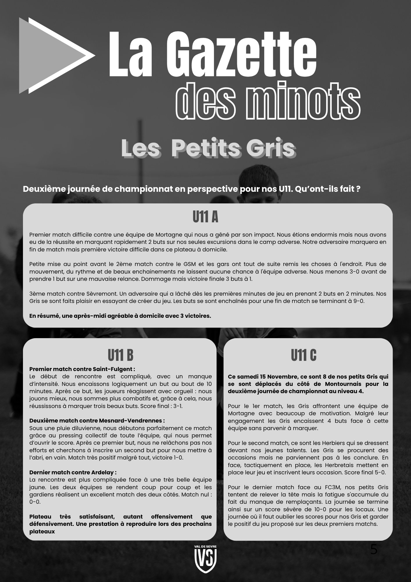 - La Gazette des Minots : Les Pitchouns (U6/U7 & U8/U9), Les Petits Gris (U10/U11 & U12/U13), Nos jeunes espoirs (U14/U15 & U16/U17)