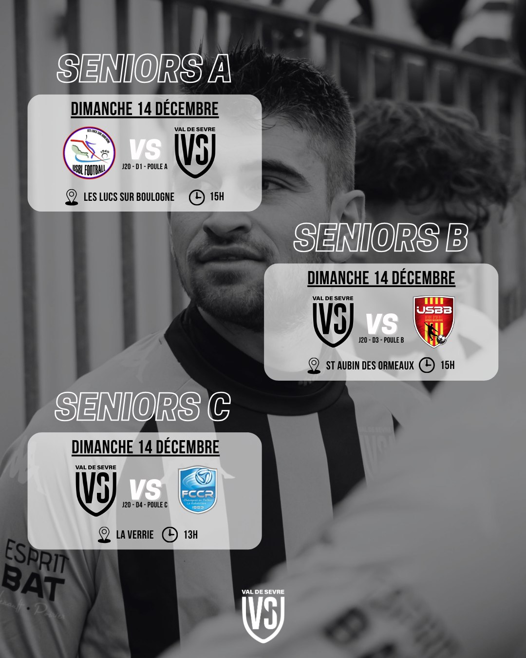 Ce week-end, l’équipe fanion se déplacera aux Lucs-sur-Boulogne. L’équipe B recevra l’USBB. Toujours à domicile, la C recevra Chavagnes-en-Paillers. Pas de match pour la 4 qui a terminé sa première phase la semaine dernière en tête de son groupe.
